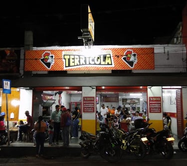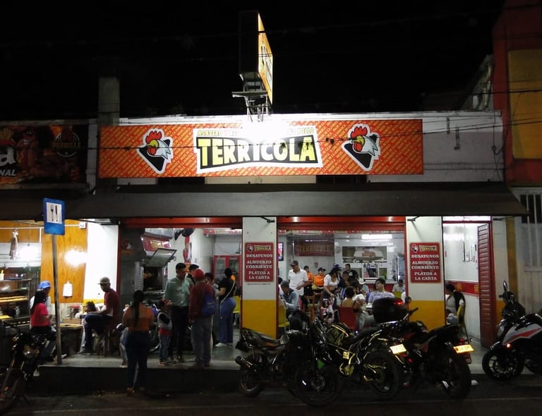 La Tradición del Pollo Asado en Cajamarca Tolima Asadero El Terrícola ha sido el referente culinario de la región. Fundado por Antonio Ramírez Coca y María Rosalba Cerón, este asadero y restaurante ha pasado de generación en generación, manteniendo viva la llama de la autenticidad y el sazón que lo distingue.