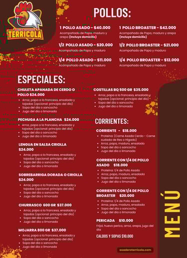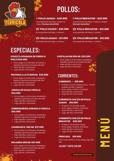 ¿Buscas un almuerzo rápido o algo más elaborado? En Asadero El Terrícola, ofrecemos opciones para todos los gustos. Desde almuerzos corrientes que te llenan hasta especiales que sorprenden, nuestro menú se adapta a tus preferencias.