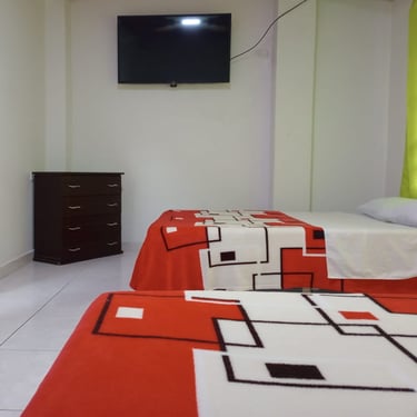 El Hotel Leña Verde cuenta con 31 habitaciones, para variedad de ocupantes, tenemos habitaciones con una, dos, tres, cuatro, hasta seis camas, para acomodación sencilla, doble o múltiple, con baño privado, Tv y Wifi
