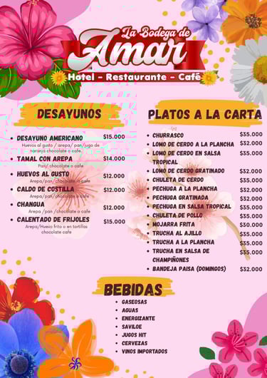 En la esquina más linda de Cajamarca, Tolima, se encuentra el restaurante La Bodega de Amar. Un lugar encantador que alegra el día a cualquiera que lo visite.